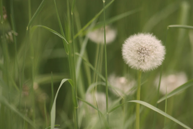 nepokosená tráva, zakvitnutá lúka plná kvetov a lietajúce púpavy.
