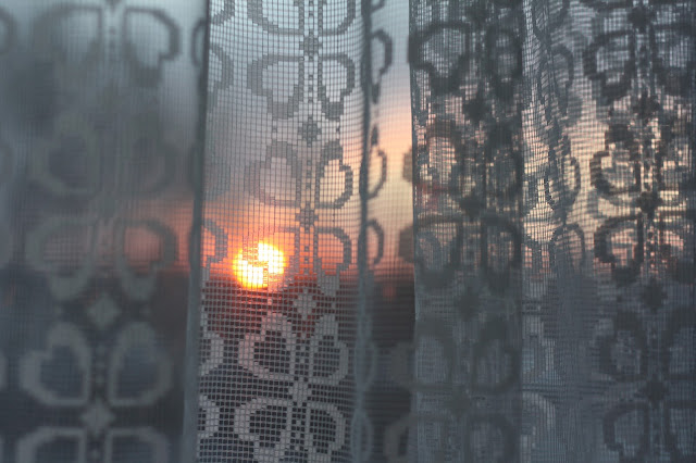 posledná ranná káva pri východe slnka, s výhľadom na stromy.